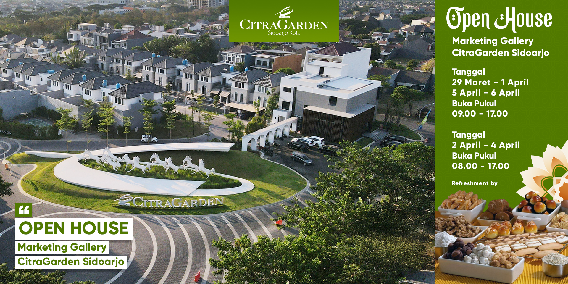 Open House di CitraGarden Sidoarjo dari tanggal 29 Maret hingga 6 April 2025, kunjungi Marketing Gallery kami dan temukan rumah