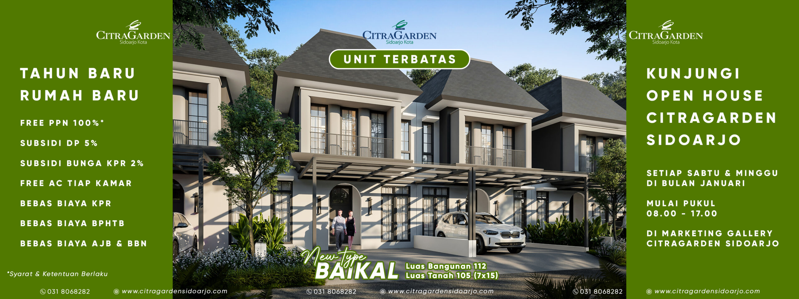 Tahun baru bingung mau cari rumah baru? CitraGarden Sidoarjo punya jawabannya! Kunjungi Open House CitraGarden Sidoarjo setiap hari Sabtu &