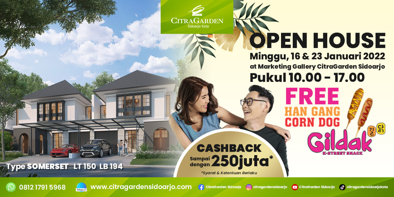 ๐ฃ๏ธ๐ RUMAH BARU CASHBACK S/D 250JUTA๐ฅ๐ฒ Ayo kunjungi Open House CitraGarden Sidoarjo ๐๏ธ Hari Minggu, 16 Januari 2022 โฐ Pukul 10.00